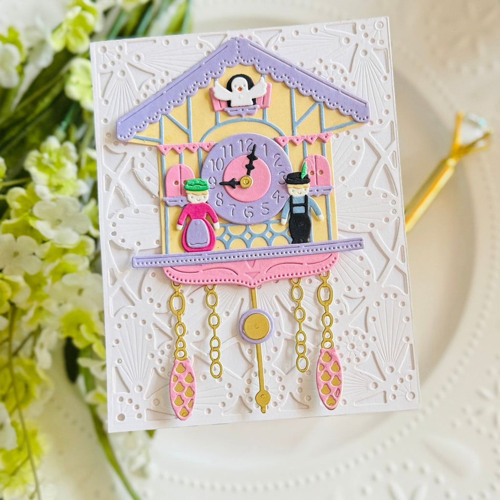 and the pendulum moves too! Accent the clock with various themes from Halloween, Thanksgiving, Winter with the other die sets in the collection. Cant make up your mind? Get them all with BD-0987 Cuckoo Cottage Die Bundle!