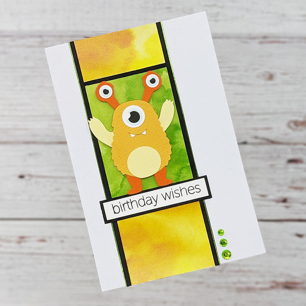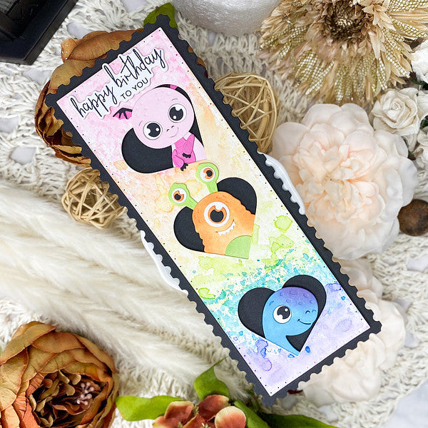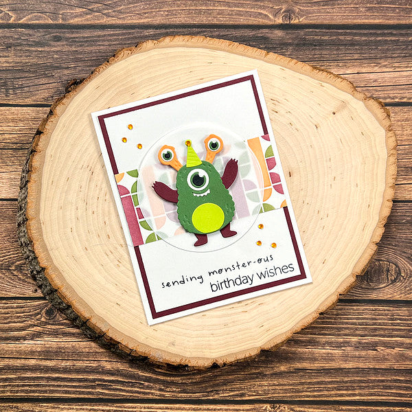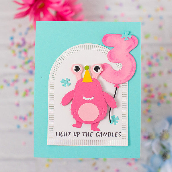 Help celebrate birthdays with these little whimsy and fun creatures in this Monster Birthday Collection. Add birthday balloons, frame in arch shapes, stamp a sentiment or two and more to complete your project creations!