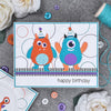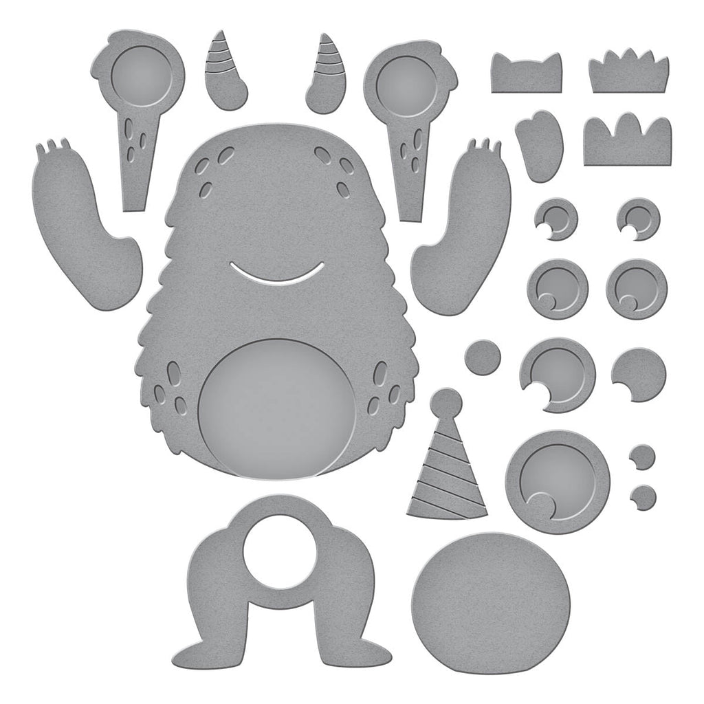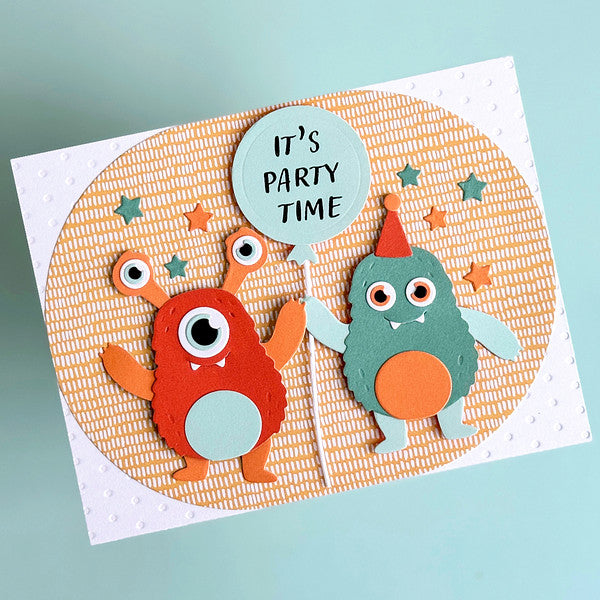 Dancin’ Birthday Monster Etched Dies is part of the Monster Birthday Collection. Assembled the set of 10 thin metal cutting dies to create several different designs of adorable furry monsters. But wait there’s more, it even dances with its moving legs! Add dancing partners from the same collection, S2-378 Dancin' Birthday Panda, and S3-497 Dancin' Birthday Dragon. Finished Monster measurement ranges from 1.65 x 2.73 in./4.20 x 6.90 cm to 1.87 x 2.67 in./4.80 x 6.80 cm