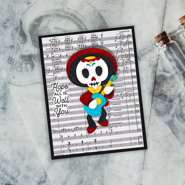Dancin’ Day of the Dead Boy Etched Dies are from the Dancin’ Halloween Collection with a set of nine thin metal cutting dies. When assembled, it creates this fun Day of the Dead guy, but wait, there’s more! It has an interactive feature with his legs swinging back and forth. Make it a party and include S3-491 Dancin' Grim and S4-1309 Dancin' Day of the Dead Girl!