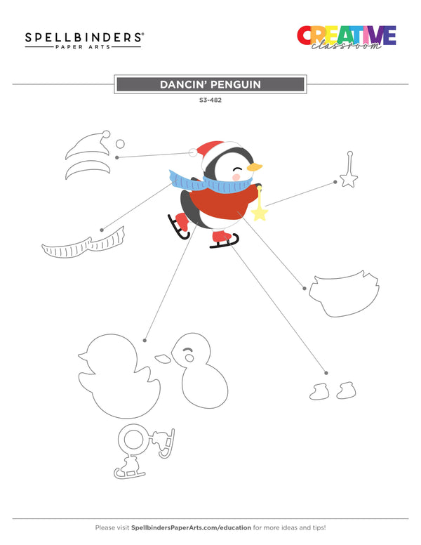 Dancin' Penguin Etched Dies is part of the Dancin' Christmas Collection with a set of five thin metal cutting dies to assemble this adorable penguin. Watch him skating as his legs move back and forth – LOVE! The assembled Penguin measures 2.25 x 2.00 in./5.72 x 5.08 cm.