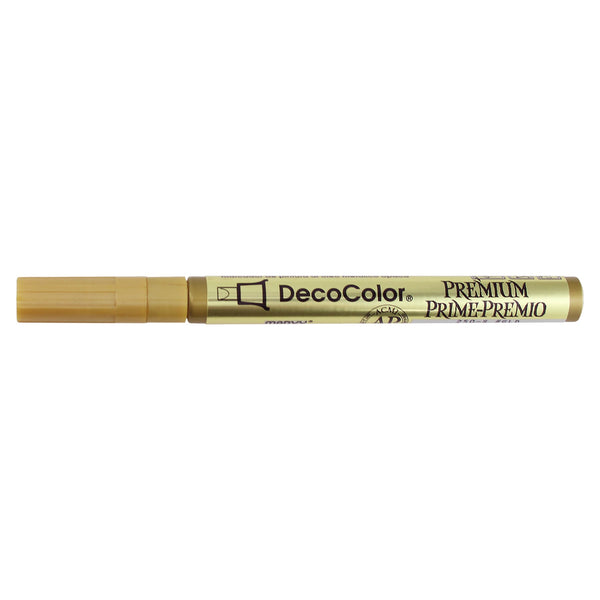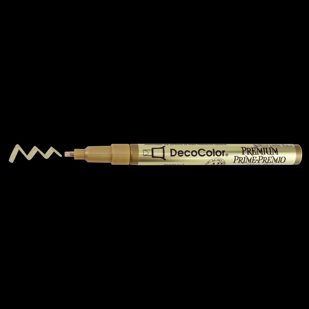 *Note: The DecoColor Premium Gold Metallic Marker is non-toxic, lead-free, and acid-free. However, contains Xylene and is not recommended on certain types of plastics, leather, metals, finished wood, paper, and fabrics. Always test on a small area first.