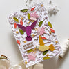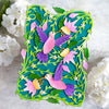 Delicate Floral Hummingbird Etched Dies are part of Bibi’s Hummingbirds Collection by Bibi Cameron. Cut and assemble to create a stunning design that covers the entire A7 size card front with this set of 15 thin metal cutting dies. Many details are in this set from blossoms and leaves to sweet hummingbirds to layer and stack for dimension and interest.