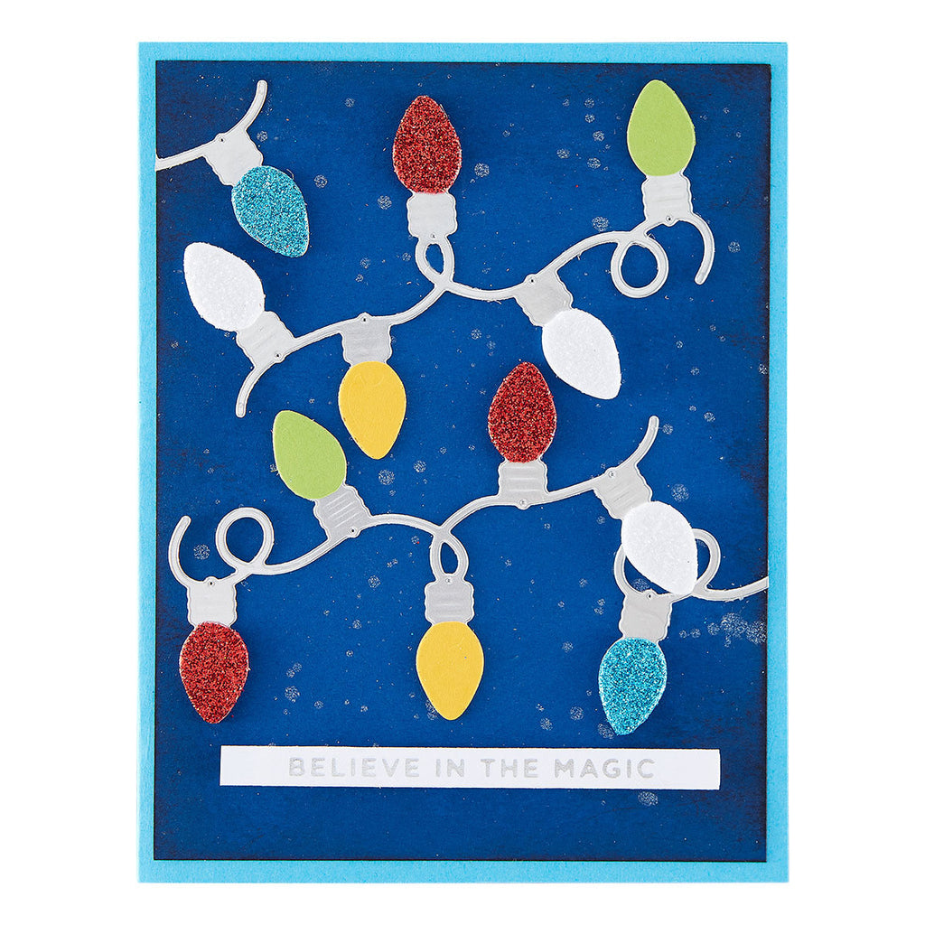 The 2016 Holiday Collection is here. Enjoy seasonal favorites year round and let the magic of the holidays create memorable keepsakes that will last for generations. Spellbinders® Die D-Lites cut, emboss and stencil with a single die template. A string of lights with three loose bulbs to layer and make a dimensional accent on your holiday projects.