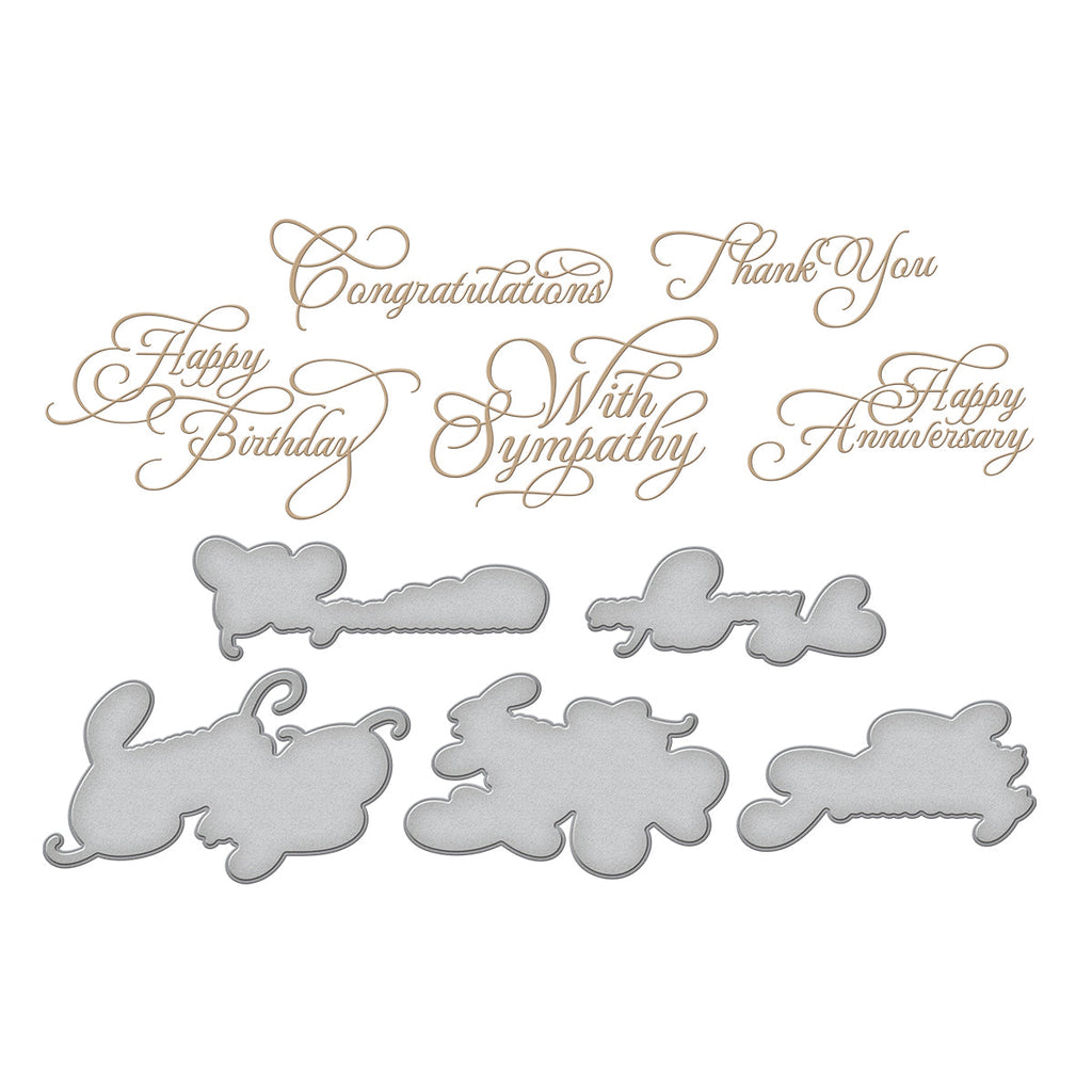 Elegant Occasion Sentiments Glorious Glimmer Hot Foil Classic Plates by Becca Feeken is set of five plates that include different sentiments: Congratulations, Happy Birthday, Happy Anniversary, Thank You and With Sympathy, and five coordinating etched dies.