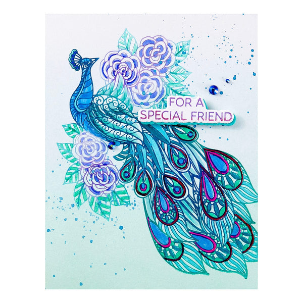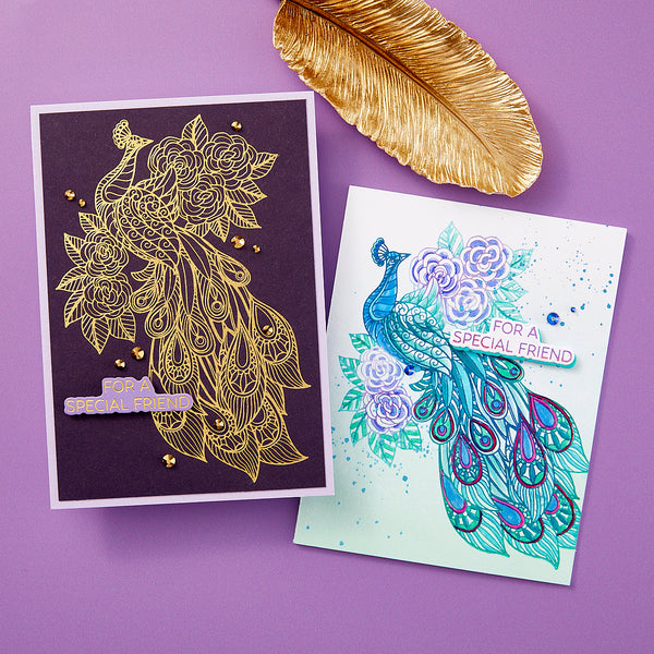 Elegant Peacock Press Plate & Die Set from the Peacock Paradise Collection by Dawn Bibby