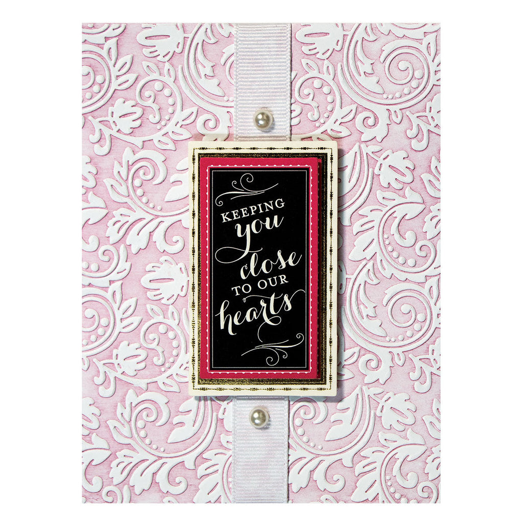 Spellbinders® Em-bossing Foldåfers™ offers options for your beautifully detailed embossing and letterpress creations. The Floral folder brings a burst of swirly petals in a beautiful pattern to the design.