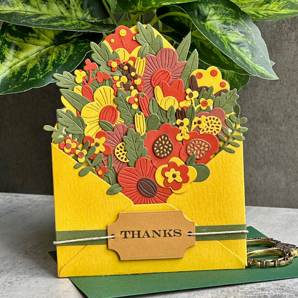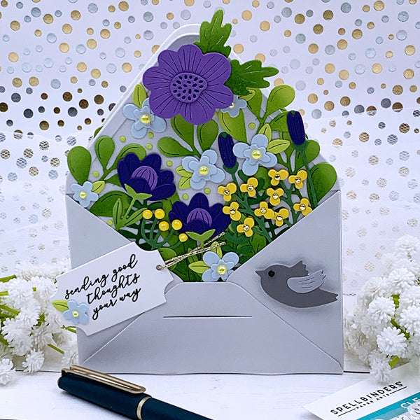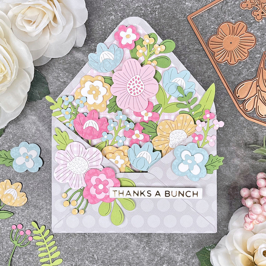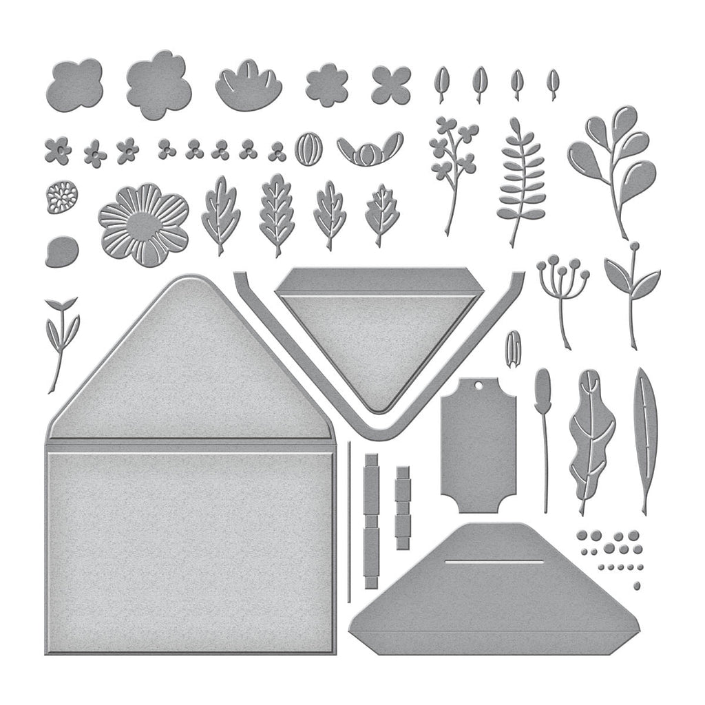 Envelope of Wonder Etched Dies are from the Envelope Full of Wonder Collection. This set includes the envelope that will work with the rest of the die sets in the collection There are 31 thin metal cutting dies that create a wonderful burst of blooms filling an envelope. What a lovely way to celebrate spring or bring a smile to the recipient.