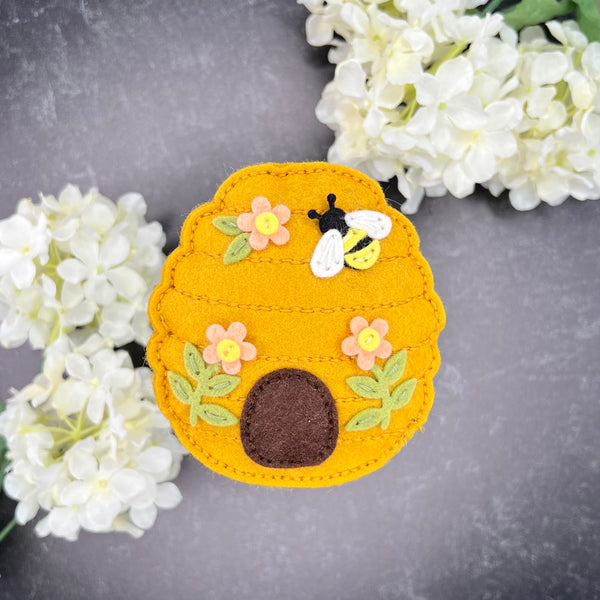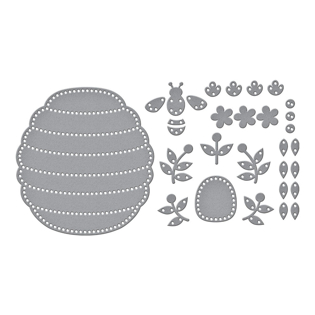 Felt Floral Beehive Etched Dies are part of the Summer Felt Stitch & Create Collection by Nichol Spohr. Make an adorable beehive accented with cute bumblebees and floral designs using this set of 14 thin metal cutting dies. The detailed stitching on the shapes’ edges gives it a finished look and becomes a stitching guide. Cut with our Merino Wool Felt Sheets for texture or cut in paper for a different look. The finished Bee measures approximately 1.14 x 0.94 in./2.90 x 2.40 cm, the Beehive measures 3.75 x 4.03 in./9.50 x 10.20 cm, and the vine measurements range from 1.01 x 1.26 in./2.60 x 3.20 cm to 0.89 x 1.09 in./2.30 x 2.80 cm.