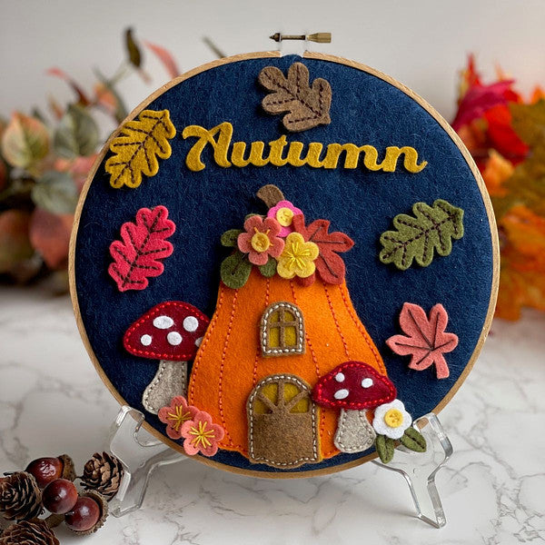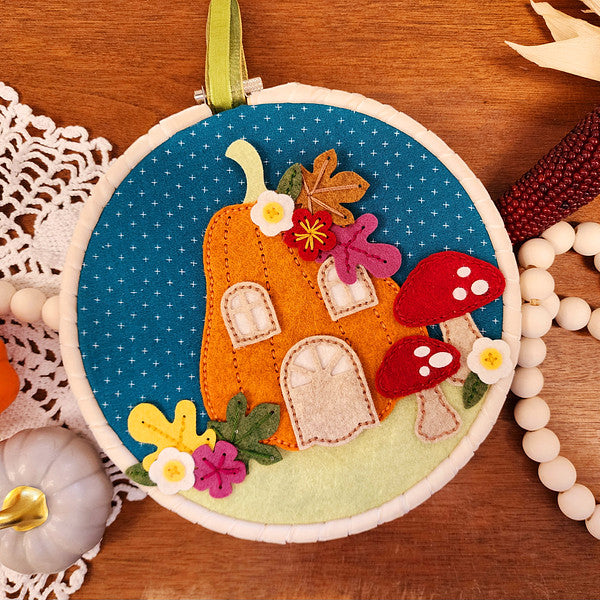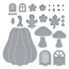 Felt Pumpkin Lane House Etched Dies are part of the Felt Stitch & Create Collection by Nichol Spohr. Who wouldn’t want to live in a wonderful pumpkin house? This set of 19 thin metal cutting dies makes it happen! The oblong pumpkin house has window details, an arched door and many accent accessories like mushrooms, leaves and flowers. The detailed stitching design on the shapes edges gives a wonderful, finished look and creates a guide for stitching this pumpkin lane house together. Cut with our Merino Wool Felt Sheets sets to bring it to life in texture and dimension, or cut in paper for an entirely different look.