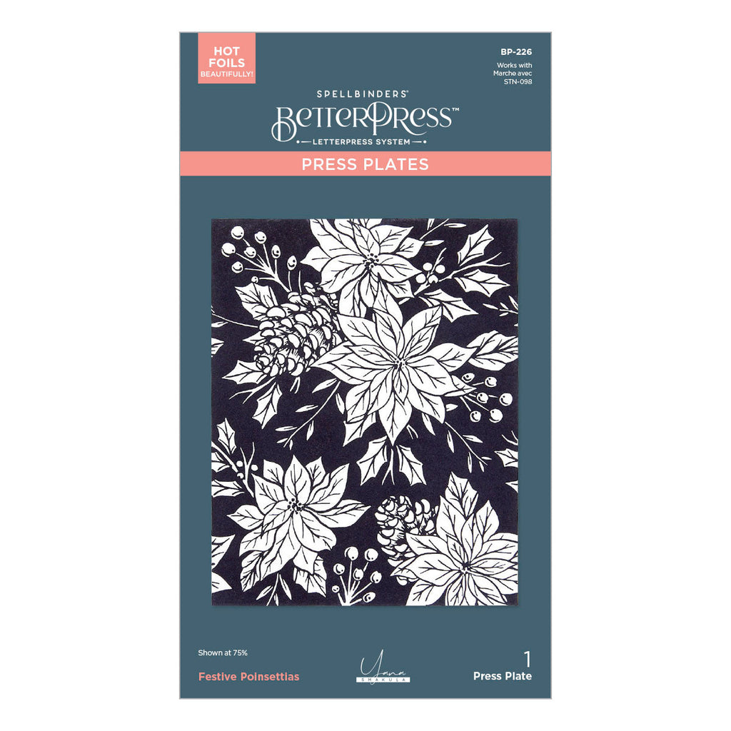 - BP-226 Festive Poinsettias Press Plate: 4.50 x 5.75 in./11.40 x 14.60 cm