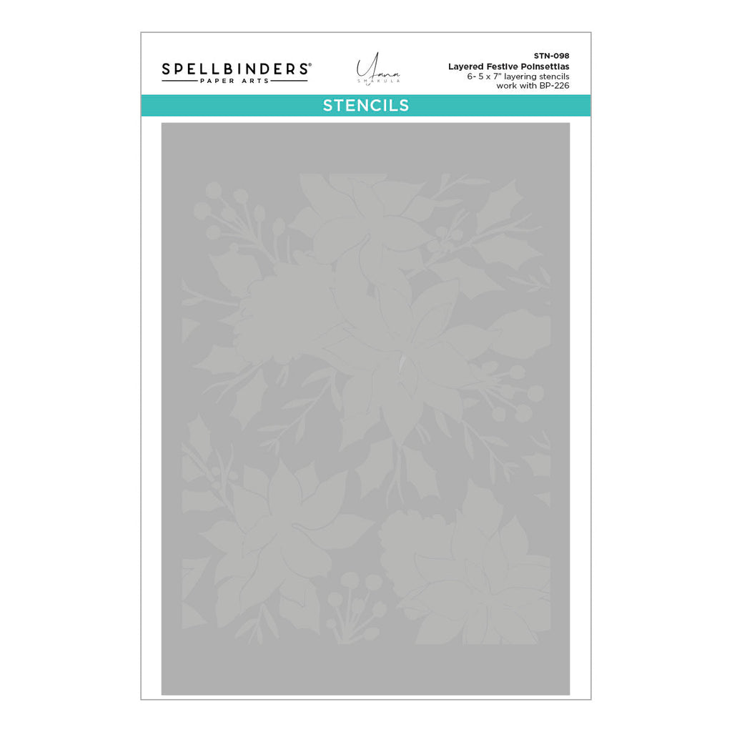 - STN-098 Layered Festive Poinsettias Stencil (6 pcs): 5.00 x 7.00 in./12.70 x 17.80 cm