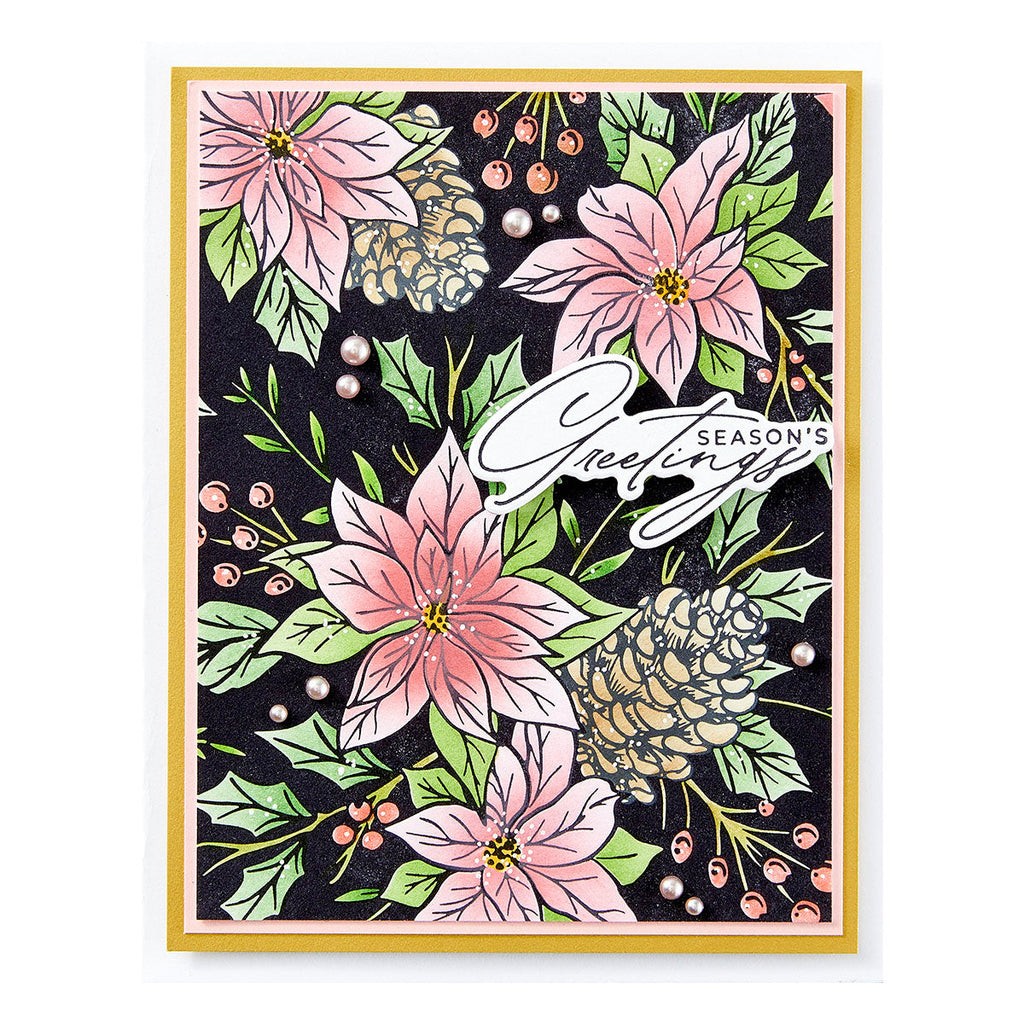 Festive Poinsettias Press Plate is from the Amaryllis Christmas Collection by Yana Smakula. The plate presses a stunning Poinsettia pattern. To fill with color and depth, use STN-098 Layered Festive Poinsettias Stencil. If you want both, look for BD-0898 Festive Poinsettias BetterPress and Stencil Bundle. Ink the plates with the BetterPress Ink to be pressed against the BetterPress Cotton Card Panel and Sheets for a crisp letterpress design.