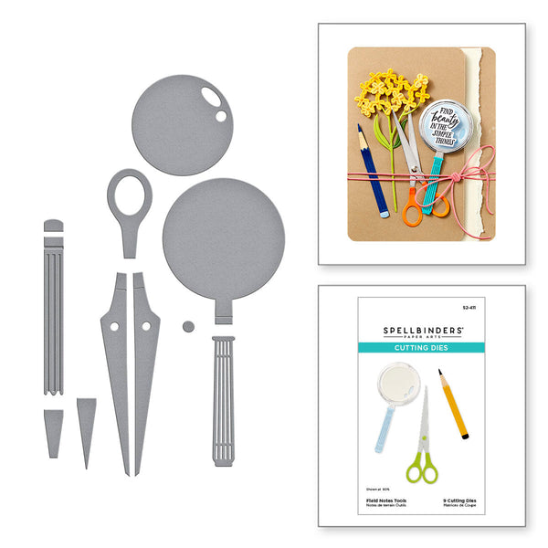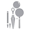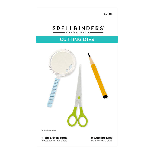 Field Notes Tools Etched Dies are from the Field Notes Collection. Create tools of a field trip expedition with this set of nine thin metal cutting dies! It includes magnifying glasses, a pair of scissors, and a pencil. Tuck them into your booklet and off you go! Finished Magnifying Glass measures approximately 1.53 x 3.27 in./3.90 x 8.30 cm. Finished Scissors measures 1.15 x 3.51 in./2.90 x 8.90 cm, and Finished Pencil measures 0.25 x 2.83 in./0.60 x 7.20 cm.