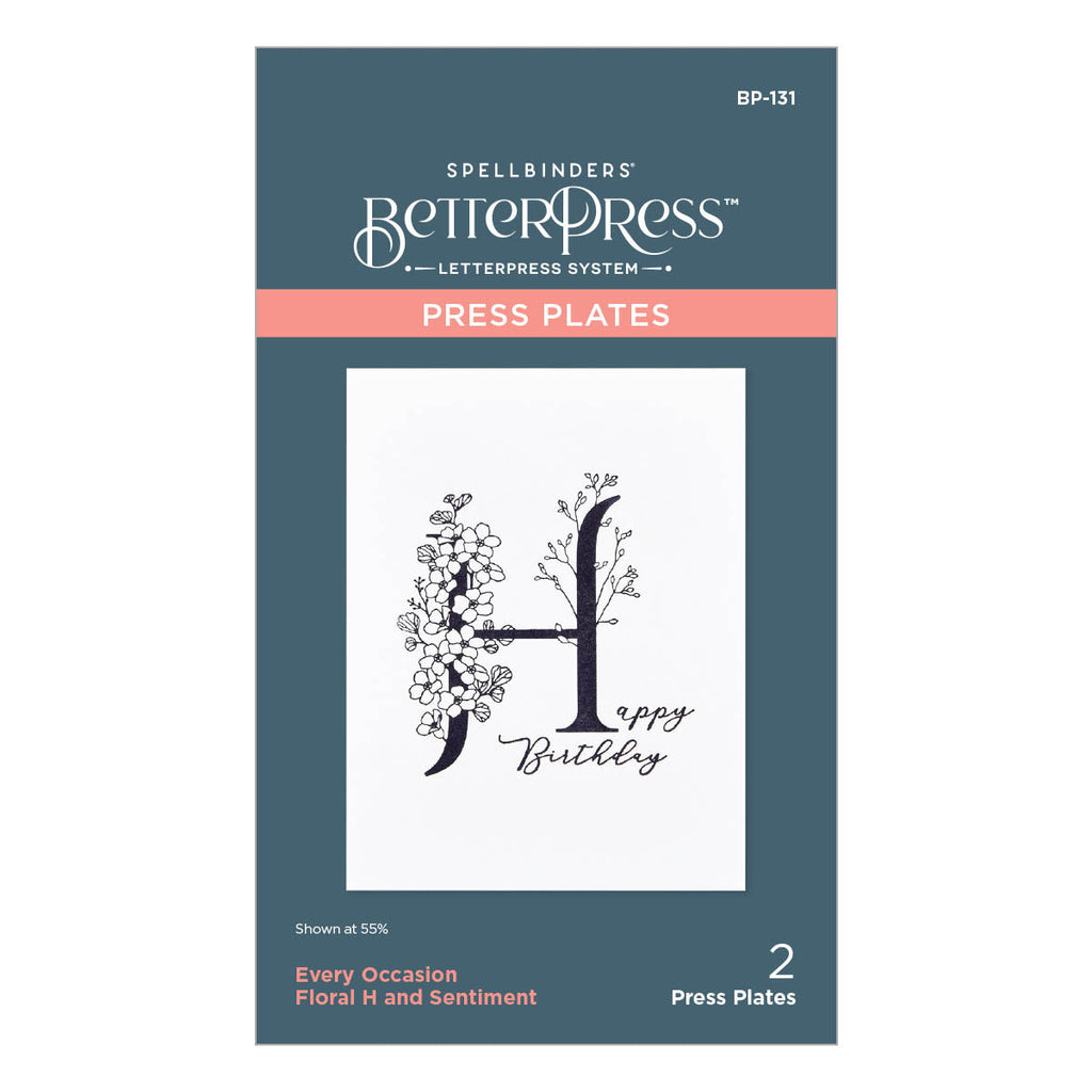 Floral H and Sentiment Press Plate is part of the Every Occasion Floral Alphabet Collection and includes two press plates. The largest plate is a stunning contemporary uppercase H font accented with floral details. The second plate compliments the letter with a sentiment, (H)appy Birthday. Ink the plates with the BetterPress Ink to be pressed against the BetterPress Cotton Card Panel and Sheets for a crisp letterpress design.