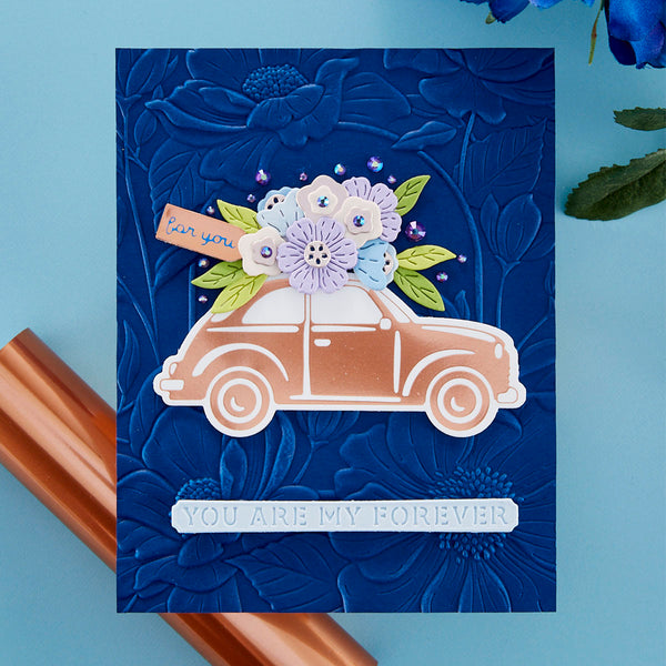 (Plates Only). This Glimmer Hot Foil Plate Set adds stunning foiled solid shape background and florals to cards and projects. Released January 2023 to our Glimmer Hot Foil Kit of the Month Club, it is a wonderful addition to your glimmer collection. Perfect for creating year round, all occasion greeting cards, Décor, gifts, and more! Glimmer Hot Foil Plates are designed to be used with the Spellbinders
