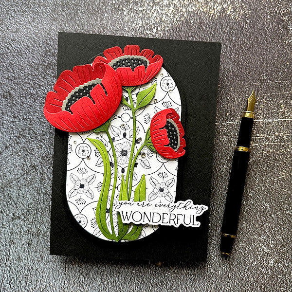 Fresh Picked Anemones Etched Dies is from the Fresh Picked Collection with a set of nine thin metal cutting dies. Assembled the set makes four different Anemones designs with its wonderful leafy stems.