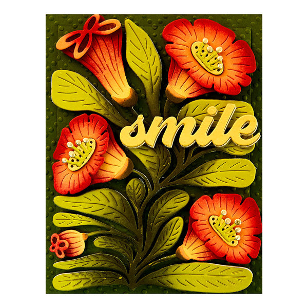 Fresh Picked Angel Trumpets Etched Dies are part of the More Fresh Picked Collection with a set of 13 thin metal cutting dies. These fun Angel Trumpet blooms will brighten up anyone’s day. This set is full of wonderful details, including leaf veins to flower centers!