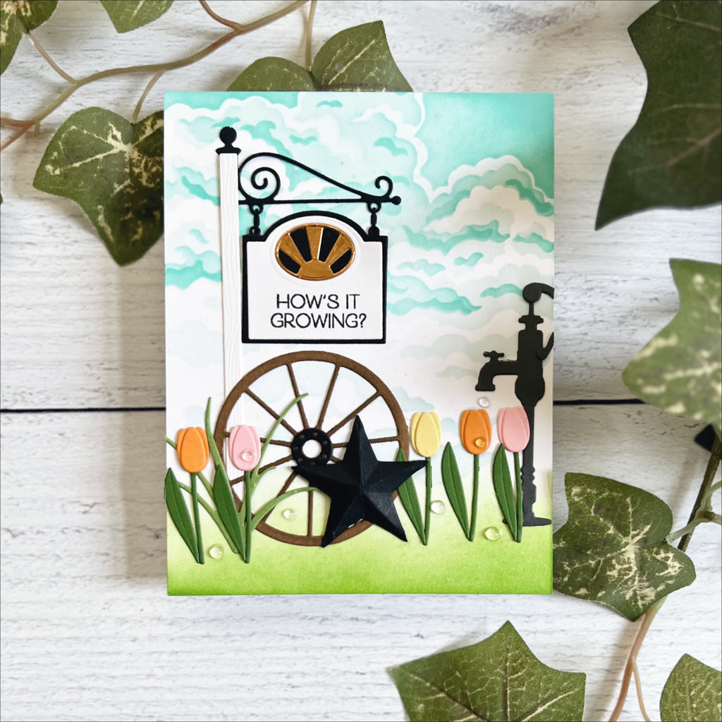 Country Road is Annie Williams’ debut collection with Spellbinders. This offering creates a wonderful rural backdrop. It includes all the details such as a wheelbarrow, florals, wooden signs to even fencing parts, and more. A clear stamp set provides not only a wonderful wood sign but sentiments and images to tie everything together. Bring a part of the countryside into your projects!