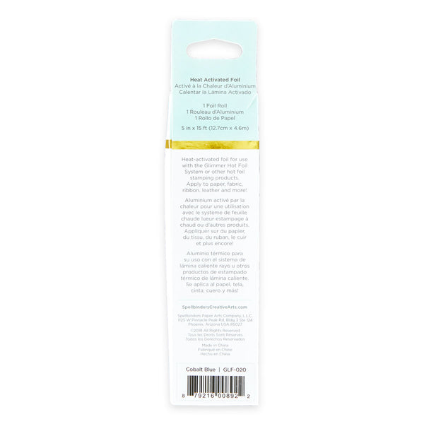 Glimmer Hot Foil Roll Cobalt Blue comes in a 15 foot roll (five inch width).