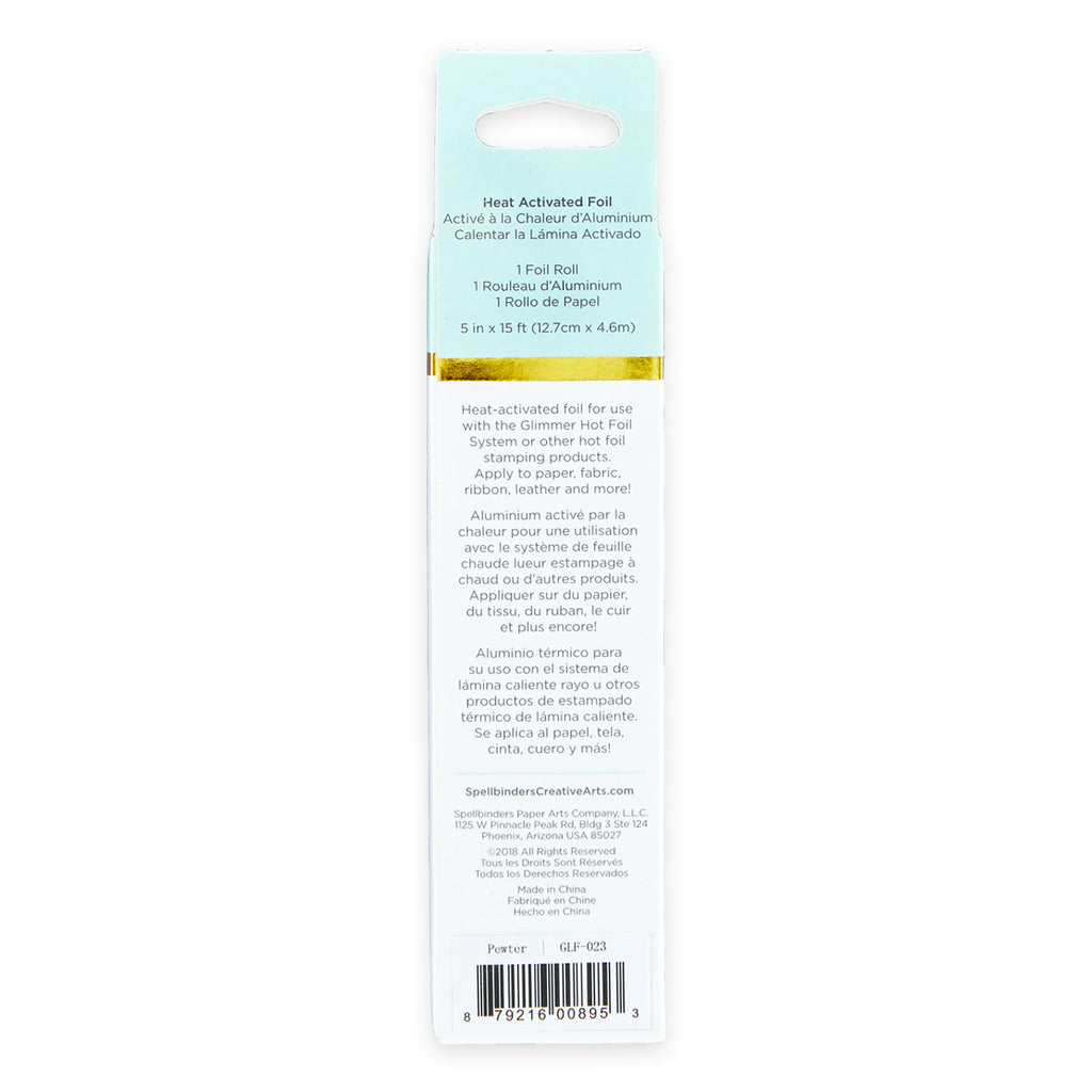 Glimmer Hot Foil Roll Pewter comes in a 15 foot roll (five inch width).