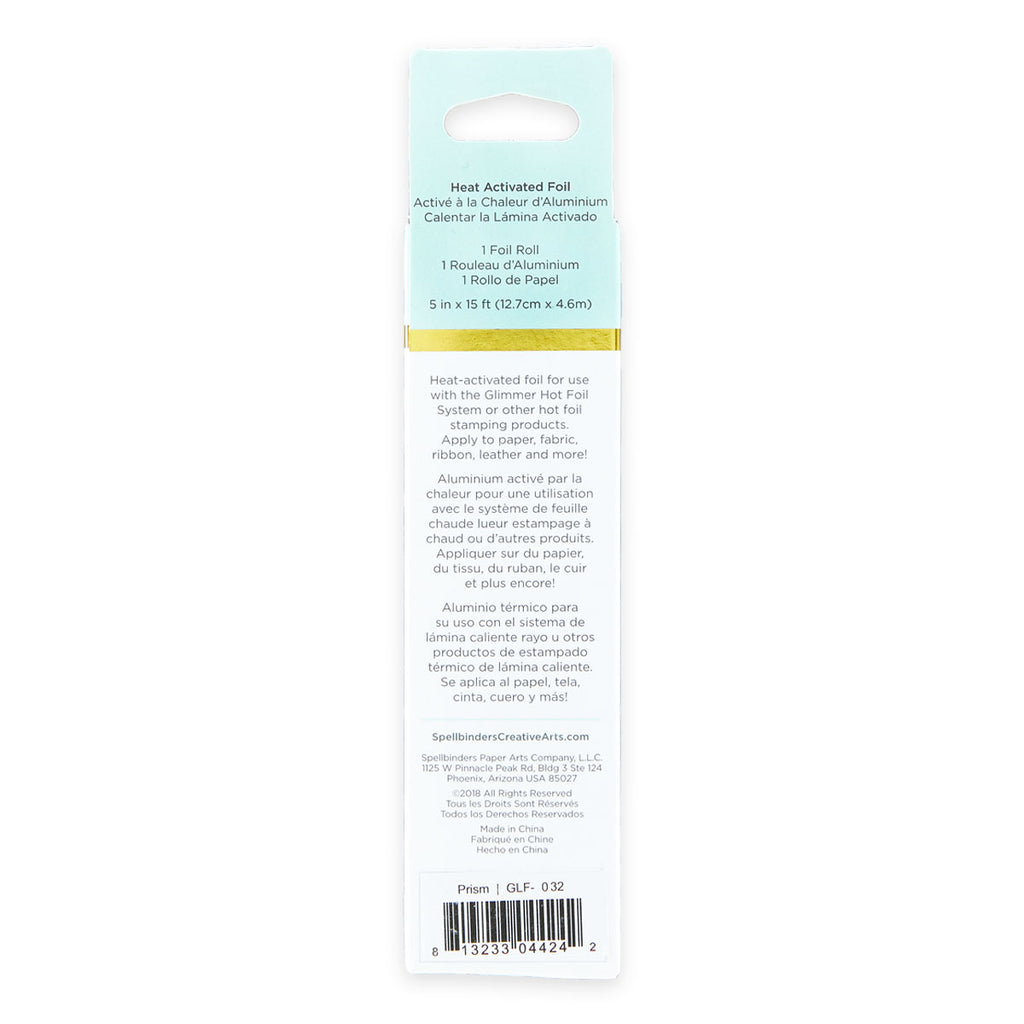 Glimmer Hot Foil Roll Prism comes in a 15 foot roll (five inch width).