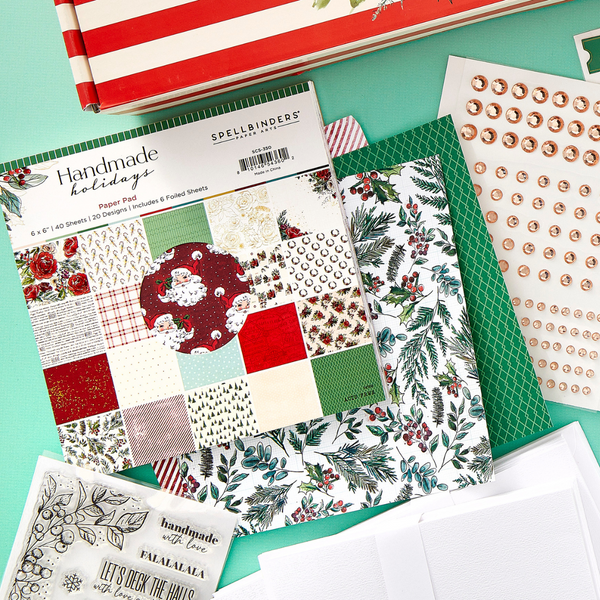 Handmade Holidays Paper Pad is part of the Handmade Holidays Christmas Kit as an add-on option. It is a 6 x 6-inch patterned paper pad. It includes a total of 40 sheets with 20 designs. Six of those designs are accented with wonderful foil motifs. The papers reflect the classic Christmas color combination. A wonderful addition of holiday patterns for your paper crafting needs!