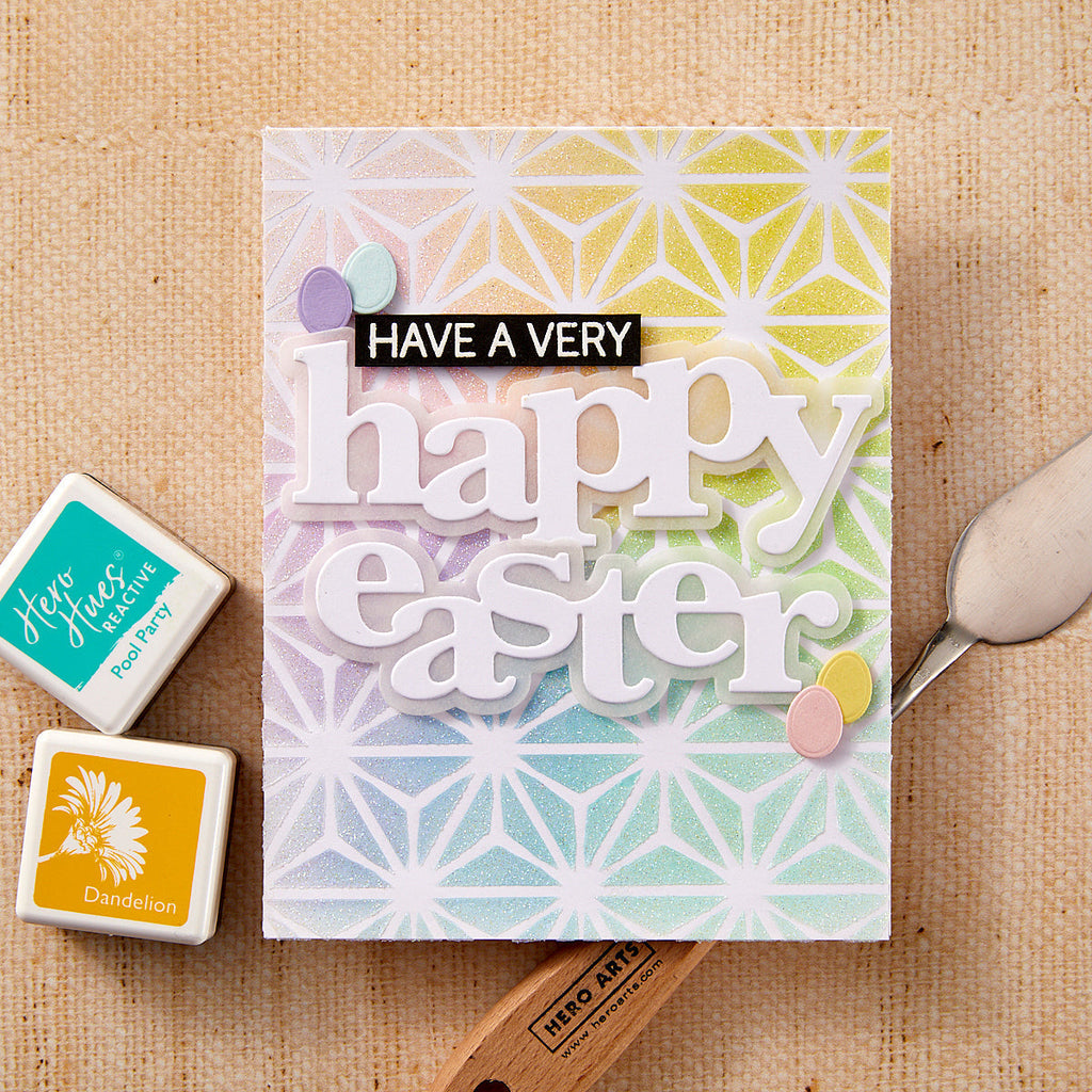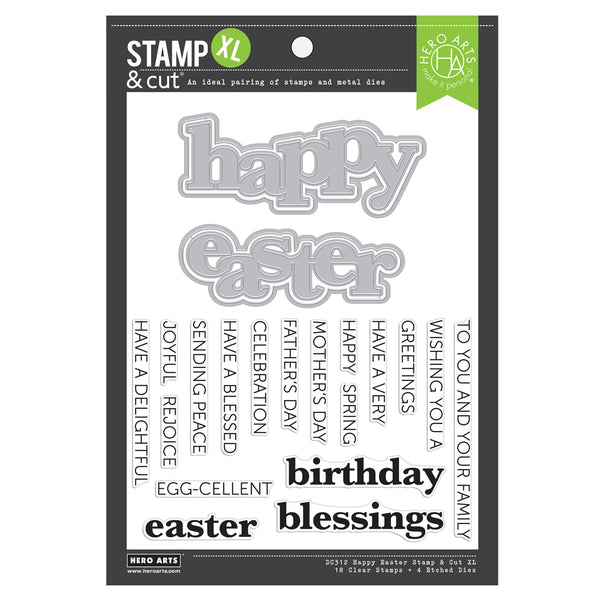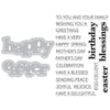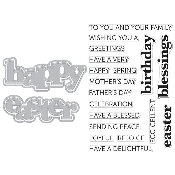 Happy Easter Stamp & Cut XL adds the perfect sentiments to complete your Charming Easter projects. With four dies and 18 clear stamps, this set can be used to send any number of greetings. The four dies cut out a layered "happy easter" and the stamped sentiments include everything from "Happy Spring" to "Sending Peace."