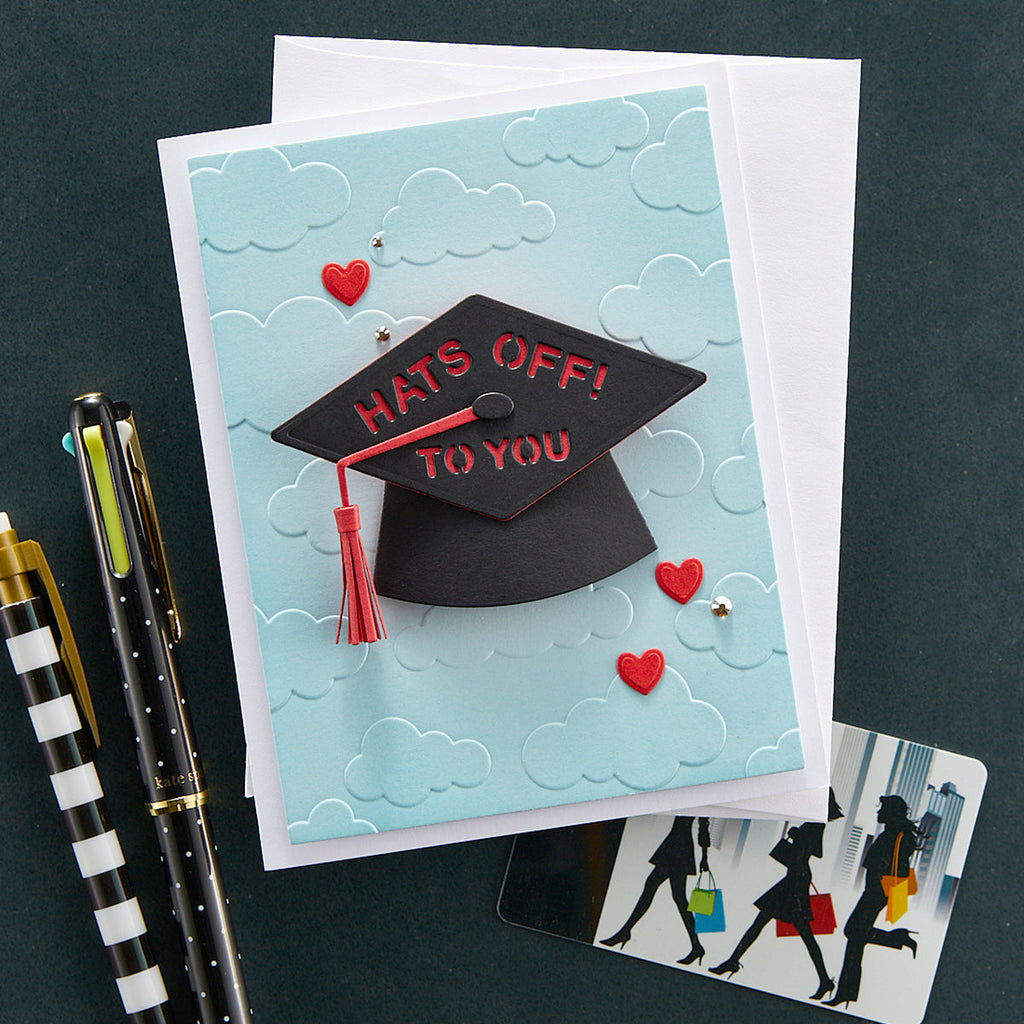 This Hats Off to You Etched Dies is from the Celebrate You Collection is a fun set if you’re looking for a perfect graduation project to create. The set of six thin metal dies includes everything to assemble a graduation cap ensemble even the tassel! Customize it with different school colors, use it for party invites, announcements, gift tags, cards…so many ways to use it.