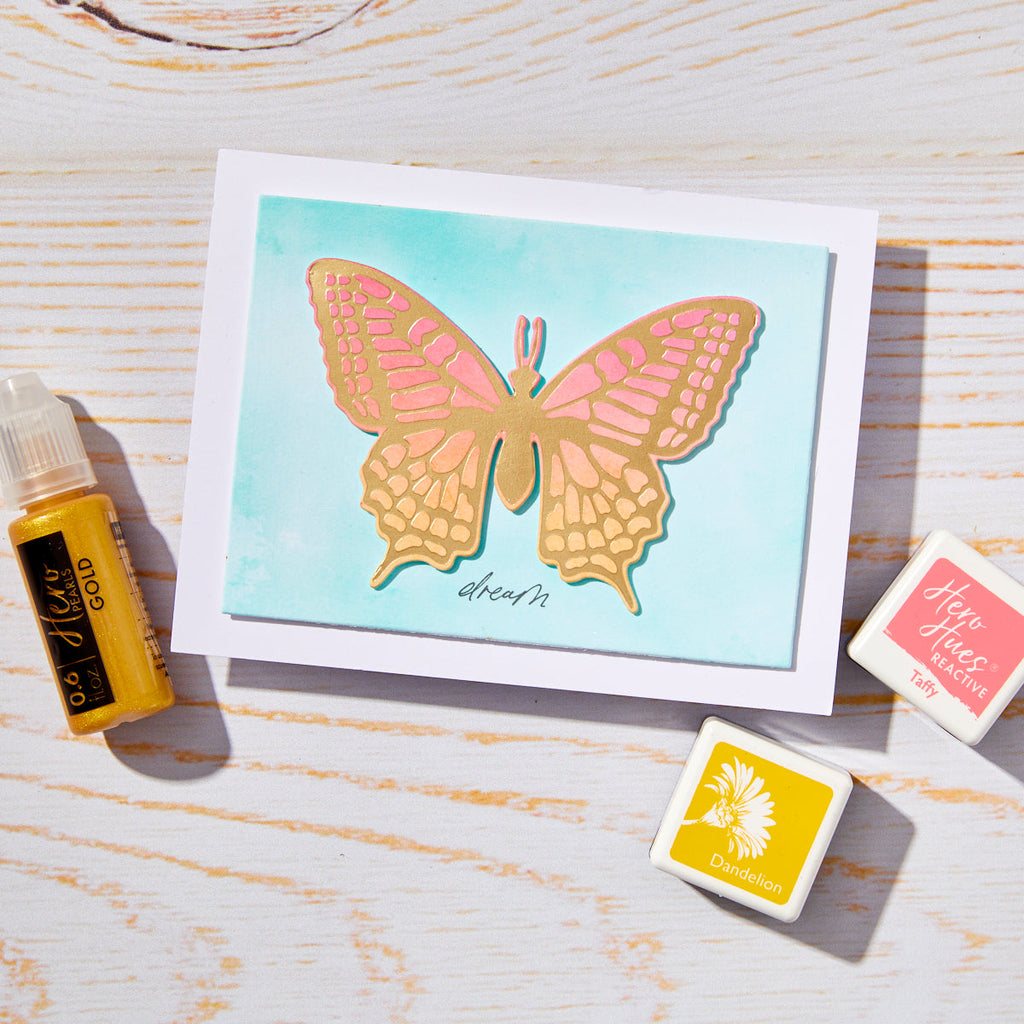 Add a sparkling touch to your next paper crafting project with the Butterfly Hot Foil Plate & Die Set from the Spring Whimsy Collection. This delicate butterfly makes for a gorgeous focal point on a card with it's stunning details. Send some spring cheer fluttering to your loved ones!