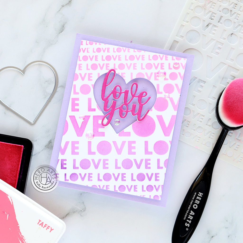 Love & Hearts Fancy Dies is a set of four dies with sweet sentiments and a burst of hearts to go with them. These bold sentiments in a lovely scripted font include "with love," "love you" and "be mine" - perfect for Valentine's day and beyond! The heart die has solid hearts as well as drop outs, making it ideal to cut multiple times in different colors and mix and match to fill in the hollow hearts.
