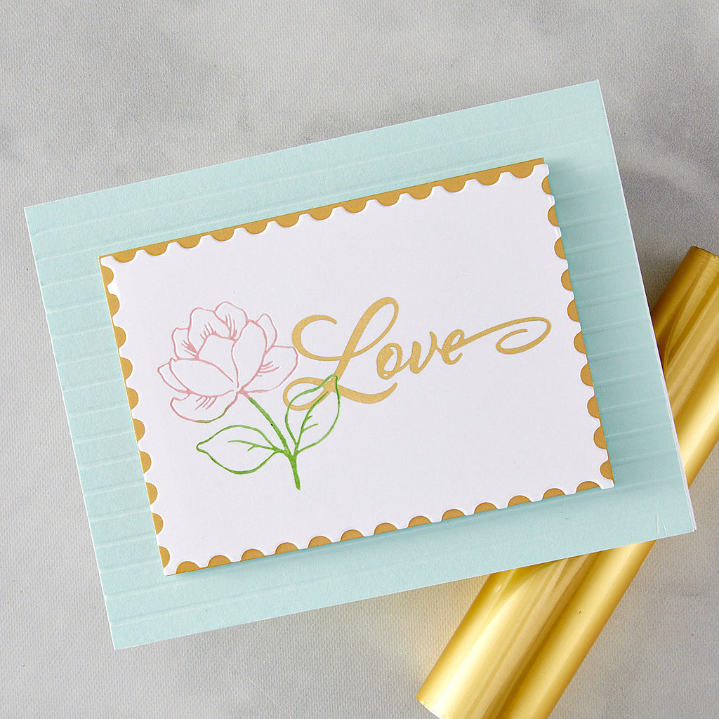Sending love is simple with the Love & Thinking of You BetterPress + Foil Plates. With two elegantly scripted sentiments, "Love" and "Thinking of You," as well as a finishing swish, this set makes for beautiful cardfront focal points. Press onto an inked background for a quick project, or add the blooms from DF234 Small Flower Layering Fancy Dies to create unforgettable cards for those you love. You'll reach for these sentiments again and again.