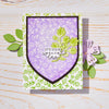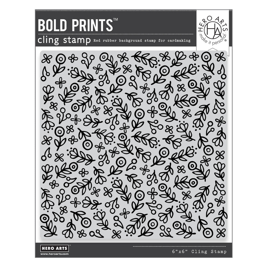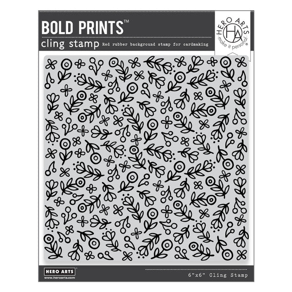 Springtime cheer is captured in the Whimsy Floral Bold Prints Cling Rubber background stamp. Packed full of small flowers, leaves and foliage, the scale of the pattern on this stamp makes it perfect for creating pattern and texture on small and large projects alike. Heat emboss the pattern in white on a colored background for a sweet relief look, or use an ombre stamp pad for an easy background for any card. Try using Hero Hues Reactive Reinkers and a light mist of water for a splash of color.
