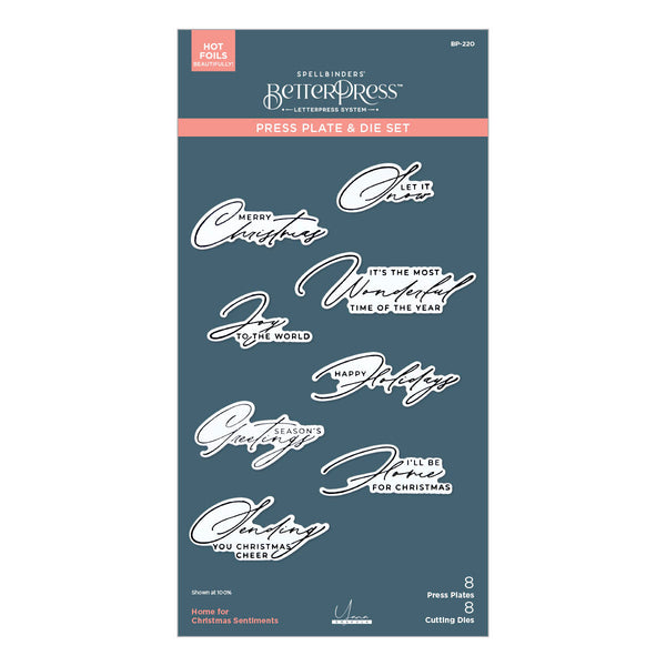 Home for Christmas Sentiments Press Plate & Die Set is from the Amaryllis Christmas Collection by Yana Smakula. There are eight wonderful holiday sentiments with each having a coordinating die. This set of eight press plates and eight dies includes I’ll be home for Christmas, Sending you Christmas Cheer, Let it Snow, Joy to the World, Happy Holidays, Season’s Greetings, It’s the Most Wonderful Time of the Year, and Merry Christmas. All press in a combination of script and uppercase font. Ink the plates with the BetterPress Ink to be pressed against the BetterPress Cotton Card Panel and Sheets for a crisp letterpress design.