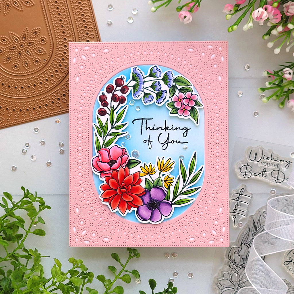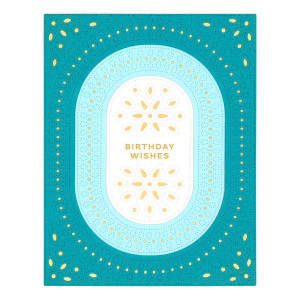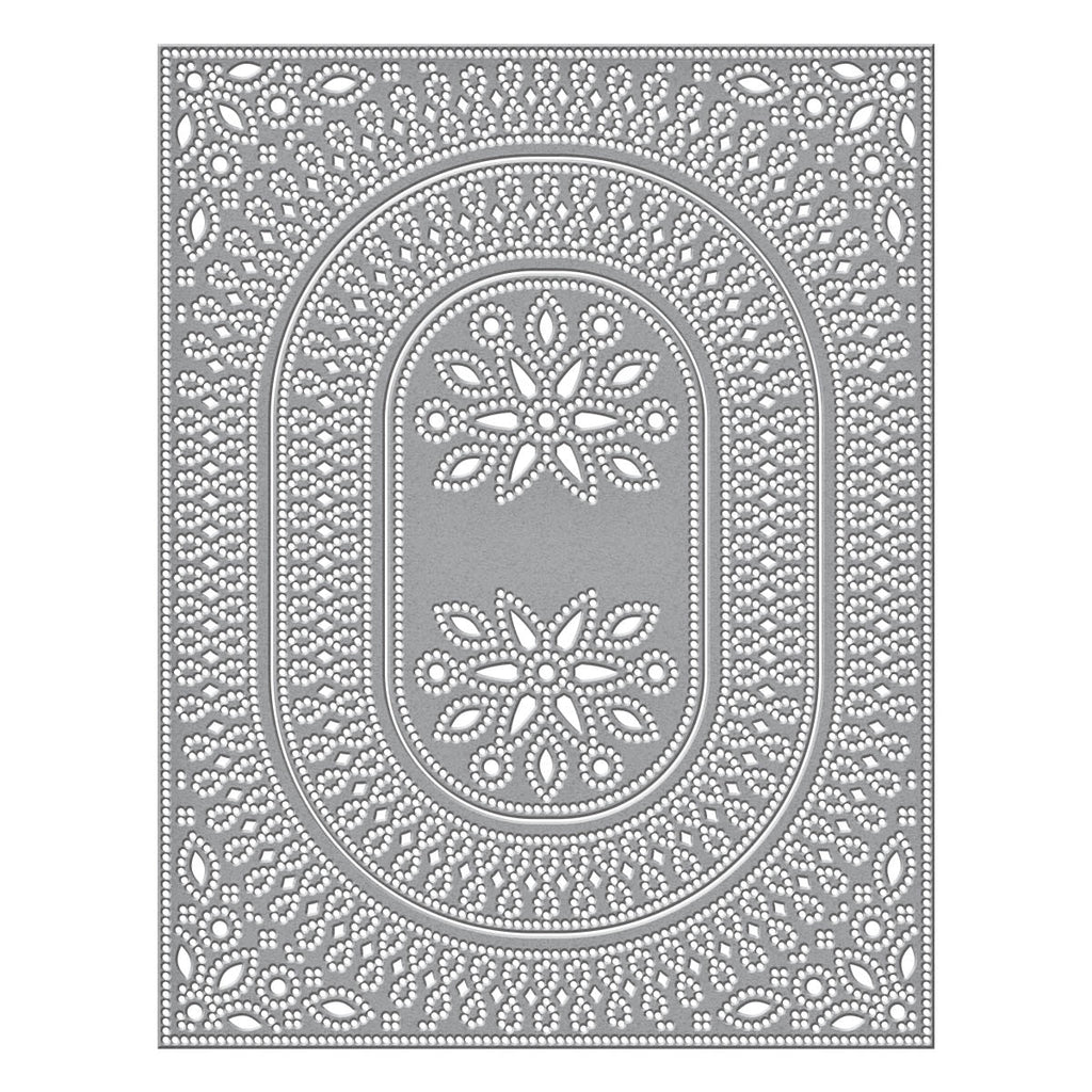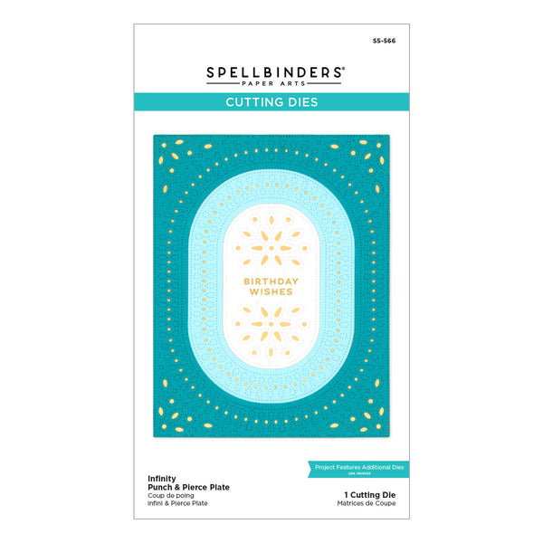 Infinity Punch & Pierce Plate Etched Dies part of the Stylish Ovals Collection. This thin metal die plate has a lovely combination of infinity loops and piercing designs that covers an A2 size card front. It also cuts into three different pieces (an outer, middle, and center layer). Any card maker who appreciates intricate designs and texture, needs this in their die-cutting collection! Use alone or pair the set with S5-562 Essential Stylish Ovals Etched Dies.