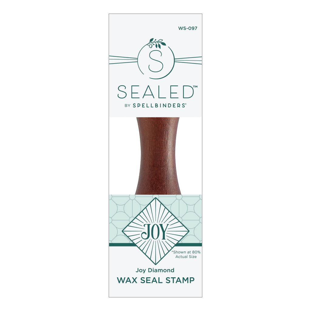 Joy Diamond Wax Seal Stamp is part of the Sealed for Christmas Collection. It has one wooden handle that supports a 1-inch square brass stamp design on its end. The word JOY is centered on this diamond-shaped design with lines surrounding this sentiment for a bold look.