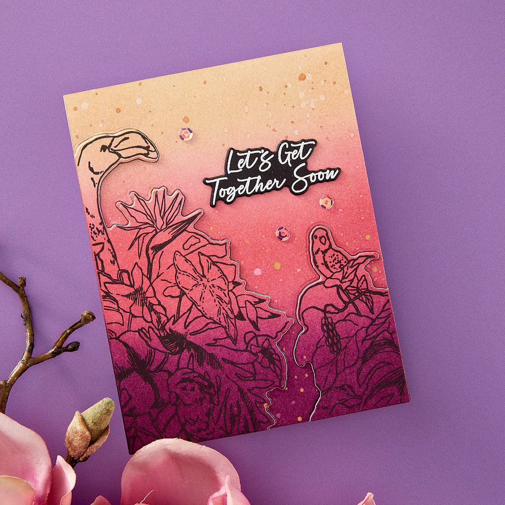 A joyful blend of color and character, this six-piece stamp and die set brings a menagerie of tropical charm to your handmade cards. Originally released in May 2024, the set is crafted from premium photopolymer for beautifully crisp impressions and effortless layering. Each shape— from the elegant flamingo to the cheerful parrot—cuts cleanly with its matching die, giving your scenes depth, movement, and a touch of whimsy.