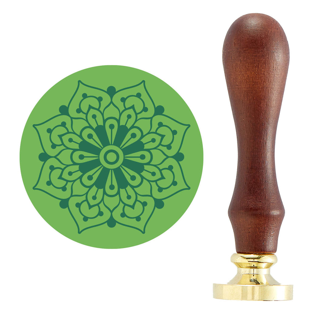 Mandala Flower - Wax Seal of the Month! It has one wooden handle that supports a 1" round brass seal stamp design on its end.