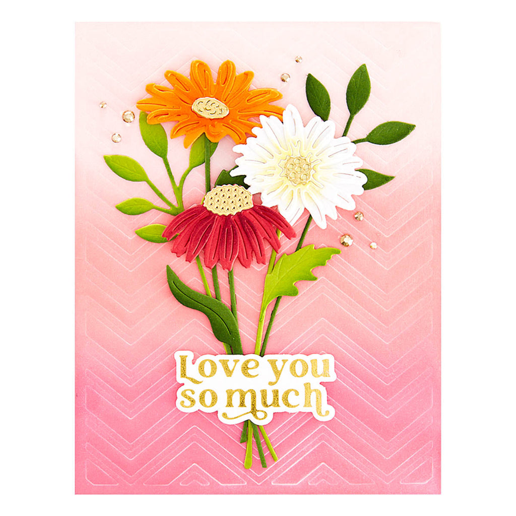 Must-Have Sentiments Glimmer Hot Foil Plate & Die Set is from the Photosynthesis Collection by Simon Hurley. A single plate foils six all occasion sentiments and its coordinating thin metal die cuts them all at once! Make several cards with a couple of movements! As the name says it is a must-have for card makers.