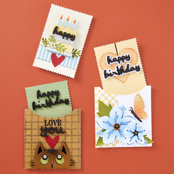 The Not Your Ordinary Card Collection by designer Wendy Vecchi takes stencils and dies to a whole new level! Based around S6-244 Gifting Envelope, this collection is designed to create three dimensional pockets perfect not just for cards, but for scrapbooks, journals, gifting and even mixed media projects. Extraordinary!