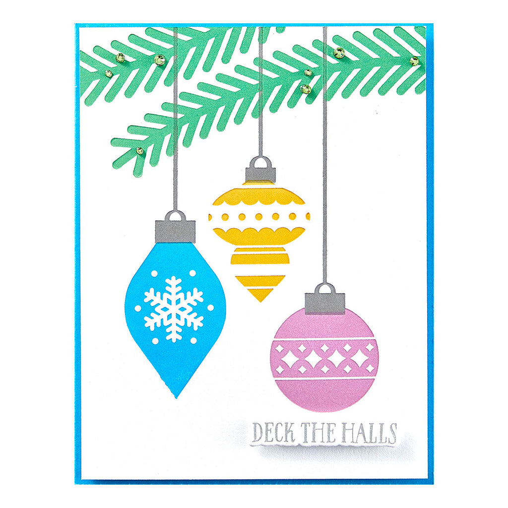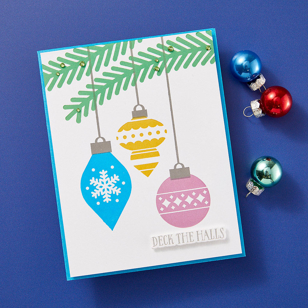 Ornamental Press Plates is part of the Glad Tidings Collection by Simon Hurley. This set of three press plates comes with a registration template to help align your projects for a perfect Christmassy scene. With three retro style ornaments and the strings and branches to hang them from, this set makes a stunning card in just a few minutes! Try inking the three ornaments in different colors for an extra pop... or use in your Glimmer machine to add a little sparkle to the project. Ink the plates with the BetterPress Ink to be pressed against the BetterPress Cotton Card Panel and Sheets for a crisp letterpress design.