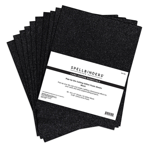 Pop-Up Die Cutting Glitter Foam Sheets – Black has a total of 10 EVA foam sheets in a pack. Pop up your die cuts with its 0.08 in./2.00 mm (1/16”) thickness or create a glittery dimensional effect for your paper crafting projects!