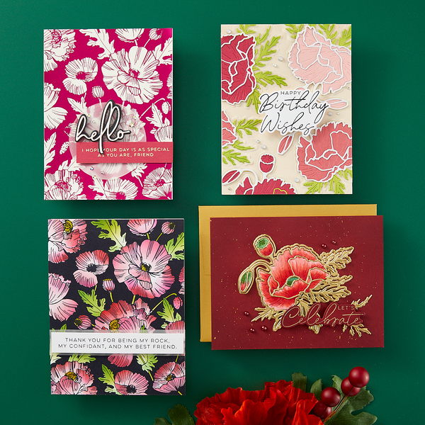 Ink the plates with the BetterPress Ink to be pressed against the BetterPress Cotton Card Panel and Sheets for a crisp letterpress design. Yana’s Poppies Collection by Yana Smakula is a lovely offering of poppy designs through dies, stencils and press plates. It is a wonderful addition for paper crafters who love this floral motif!