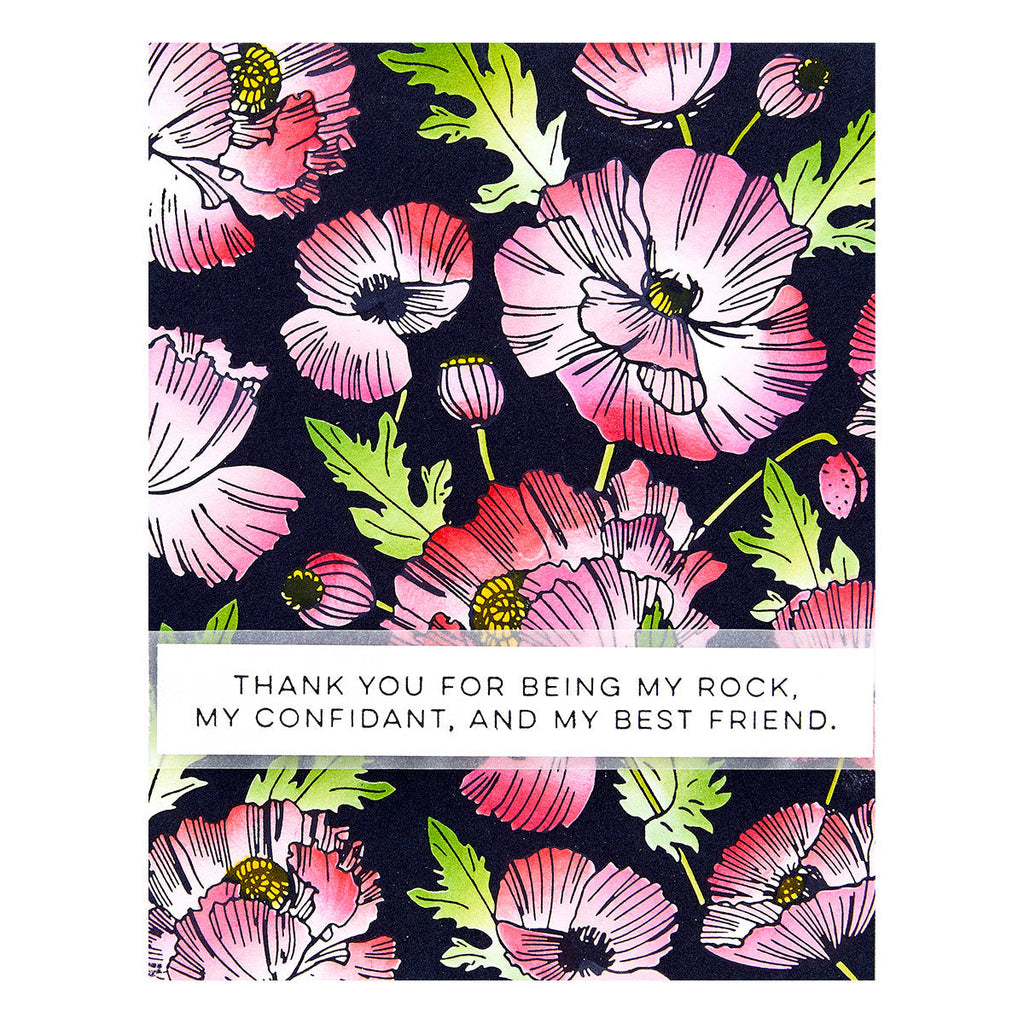 Poppy Background Bundle is part of the Yana's Poppies Collection by Yana Smakula. It includes BP-217 Poppy Background Press Plate and the coordinating Layered Poppy Background Stencil. The stencil set is exclusive to the bundle. Here’s your chance to get both as a bundle! Yana’s Poppies Collection by Yana Smakula is a lovely offering of poppy designs through dies, stencils and press plates. It is a wonderful addition for paper crafters who love this floral motif!