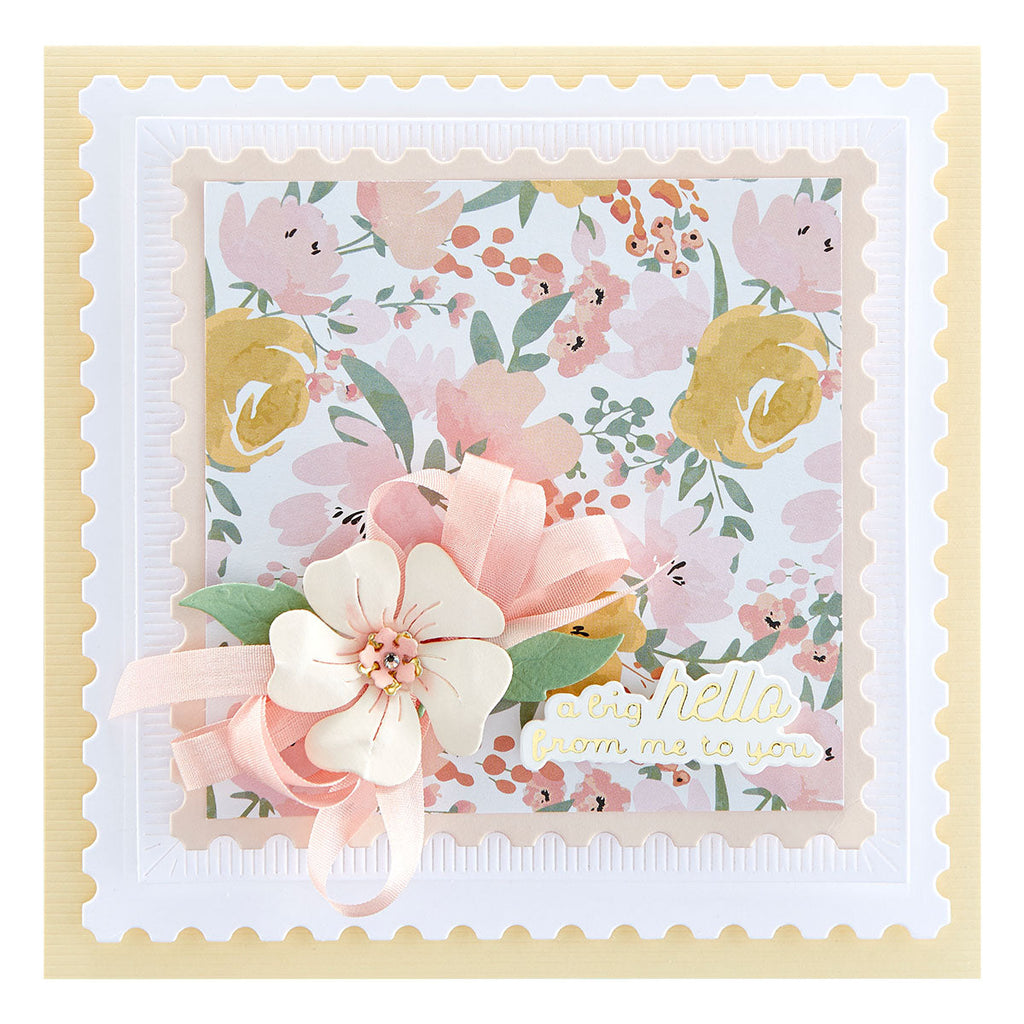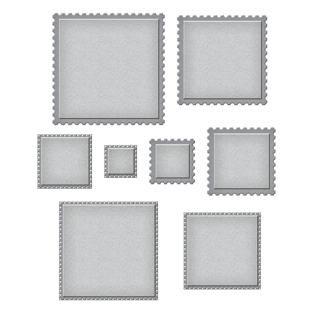 Postage Edge Squares Etched Dies are part of the Postage Edge Shapes Collection by Becca Feeken and has eight thin metal cutting dies. For a subtle WoW factor, stack them with complementary square shapes that has finishing edges like her Fluted Classics or Hemstitch Collection and others alike.