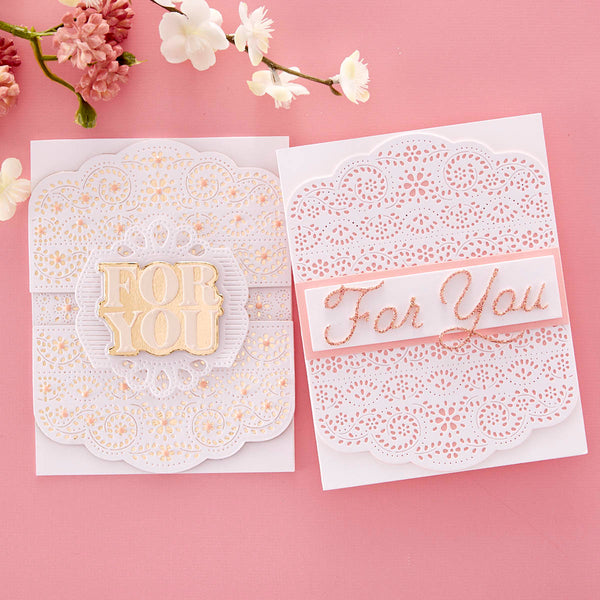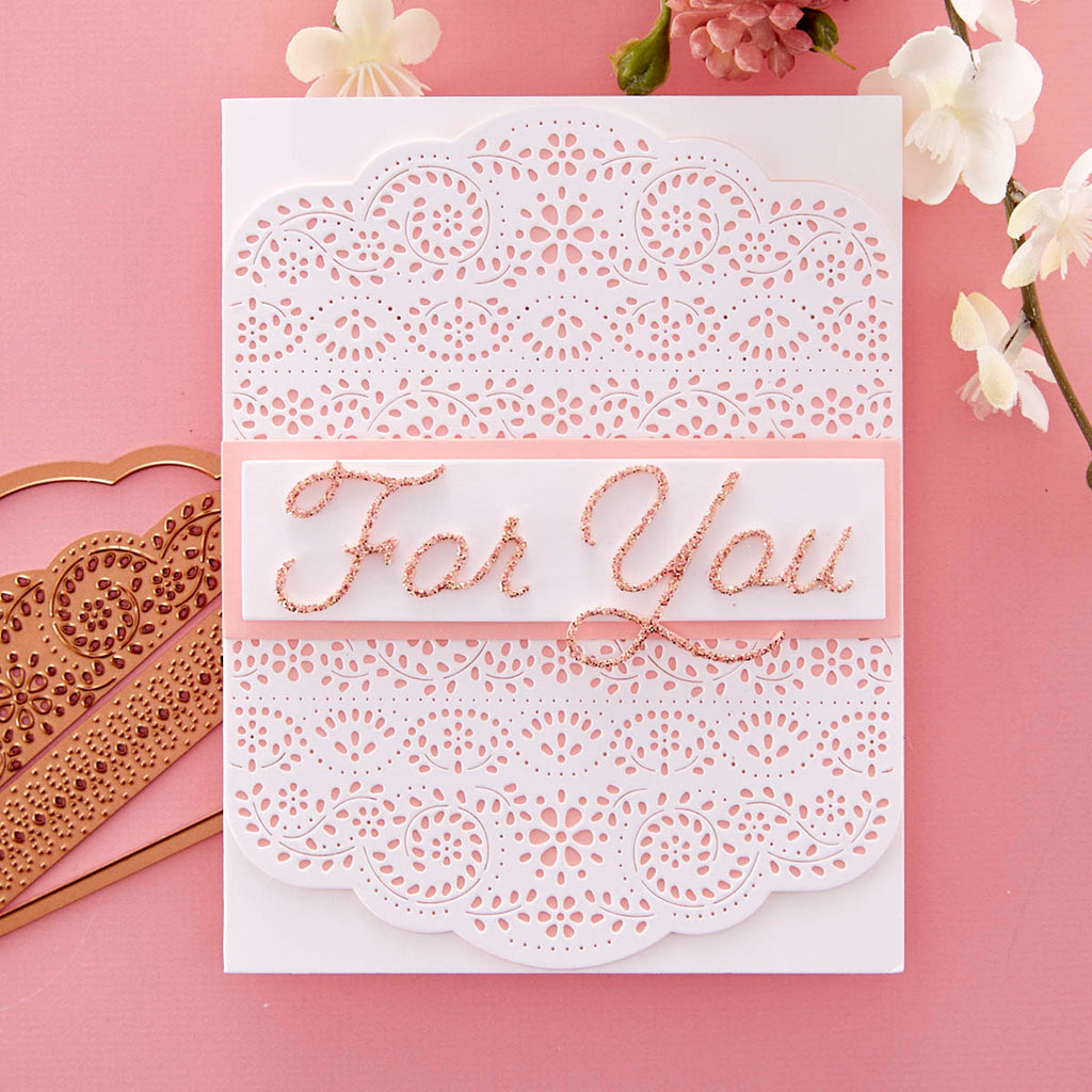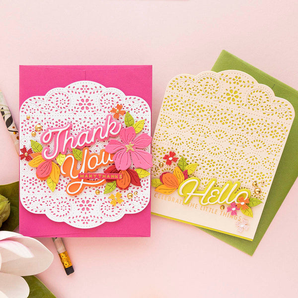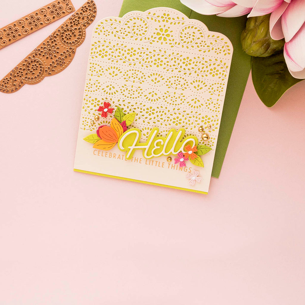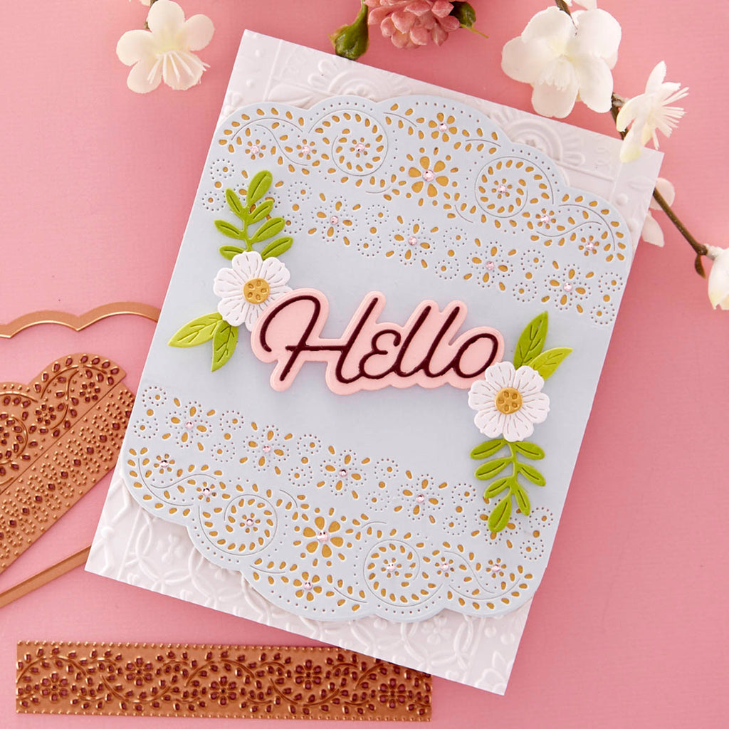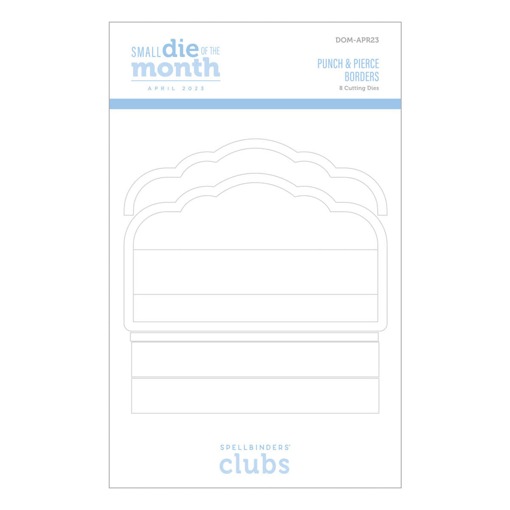 Punch & Pierce Borders - Small Die of the Month this 8-piece Die Set, cuts, embosses, debosses, and stencils. Released April 2023 to our Small Die of the Month Club creates a beautiful centerpiece. Use to create cards, décor, gift card holder, gifts, and more!