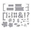 Punctuation & Icons Etched Dies are a part of the Just Sayin’ Collection by Kelly Bangs. Add emphasis and accents to your project with this set of 19 thin metal cutting dies full of punctuation! Other icons include arrows, hearts, stars, florals, tickets and so much more!