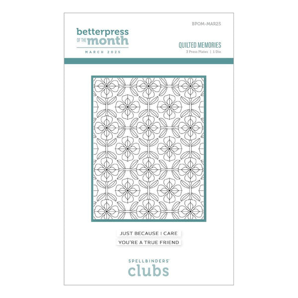 Quilted Memories - March 2025 BetterPress of the Month: Add timeless elegance to your projects with the Quilted Memories press plate set, featured as the March 2025 BetterPress of the Month. Inspired by classic quilt patterns, this beautifully detailed design creates a stunning letterpress effect, perfect for backgrounds, card fronts, and heartfelt sentiments. Whether crafting for a friend or just because, this set brings warmth and charm to every creation.