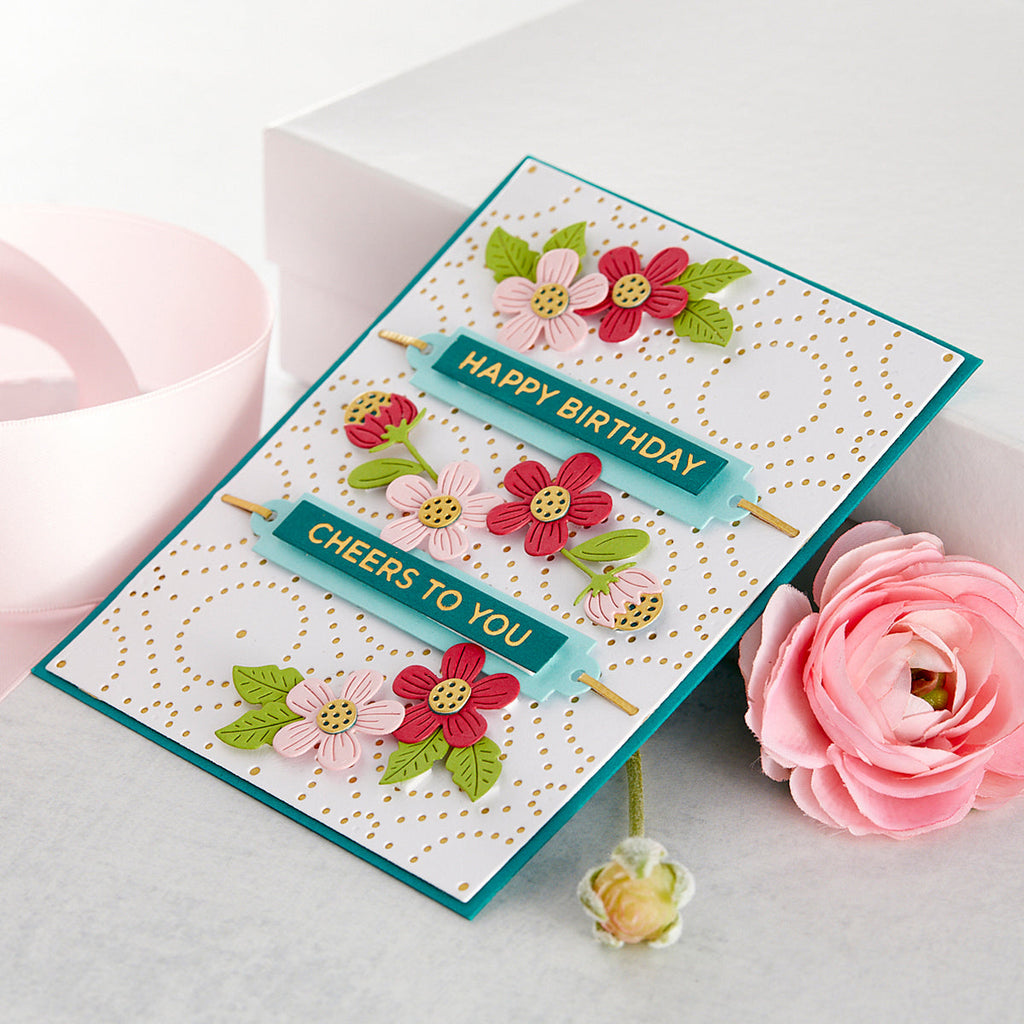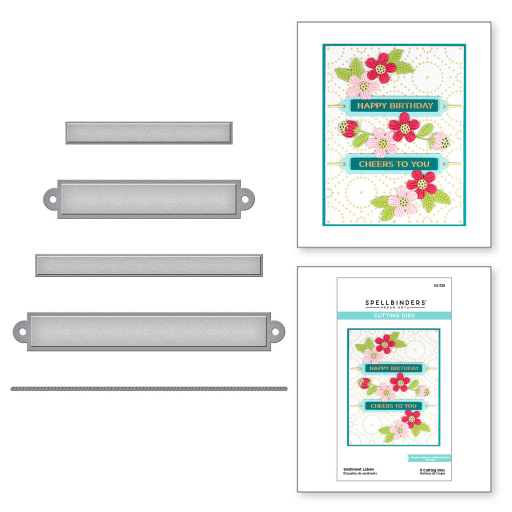 The Sentiment Labels Etched Dies from the Celebrate You Collection is a great option for a tag or label set. The five thin metal dies include two rectangular label shapes with an opening on each side for a brad or ribbon and coordinating inserts for each. In addition, a ribbon/twine die to round out the set. Looking for another option? In the Celebrate You collection, S2-327 Swallowtail Tags set, and S3-427 Assorted Tags set are also available.