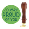 So Proud of You - Wax Seal of the Month (Seal Stamp Only) It has one wooden handle that supports a 1" x 1" circle brass seal stamp design on its end.